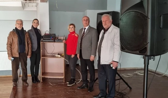 Ticaret Lisesi Mezunlar Derneği yeni ve eski yönetimi başlattıkları bağış kampanyası ile okullarına ses sistemi hediye ettiler.