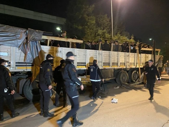 Olay, Kartepe ilçesi Arslanbey Organize Sanayi Bölgesi Ülker Sokak'ta meydana geldi. Edinilen bilgiye göre, Kocaeli İl Emniyet Müdürlüğü ekipleri 06 DK 4226 plakalı Mercedes marka tırı durdurdu. Polis ekiplerince tırın dorse kısımda yapılan incelemelerde branda ve boruların arasına saklanmış halde 150'ye yakın yabancı uyruklu düzensiz göçmen olduğu tespit edildi. Olay yerine hemen çevik kuvvet ekipleri sevk edildi. Ardından göçmenler dorseden indirilip bölgeye gelen Kocaeli Büyükşehir Belediyesine ait 2 otobüs ile Yarımca Polis Merkezi'ne götürüldü.