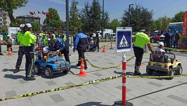Etkinlikler çerçevesinde araç kullanma parkurları da kuruldu. Parkur alanında çocuklara trafik kuralları konusunda eğitim verildi. Ekiplerin rehberliğinde akülü araçlara binen minikler, trafik kurallarını öğrendi.