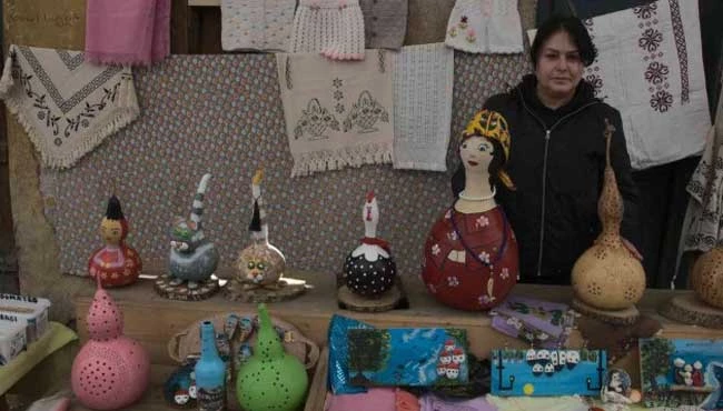 Nurhayat Aksakal, su kabaklarını boyayarak dekoratif süs eşyalarına dönüştürüyor.