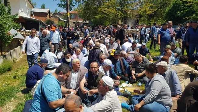 Binlerce kişinin toplandığı alanda edilen duaların ardından bulgur pilavı yufka ve ayran dağıtıldı.