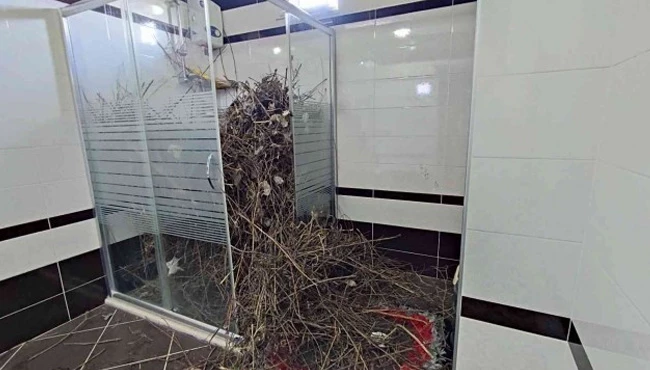 Yaşadığı şaşkınlığı anlatan anne Aydın, "Oğlum iki yıl önce iş için şehir dışına çıktı ve evi iki yıldır boş durumda. Banyonun havalandırma camından kargaların girip çıktığını gördüm. Üst kattan da karga sesleri geliyordu. Anahtarı istedim, kargoyla gönderdi. Eve girdiğimde, kargaların banyonun camındaki tülü yırtarak girmiş olduğunu ve duşa kabini ağzına kadar dal parçaları ve çöple doldurduğunu gördüm. Şimdi kara kara düşünüyorum, bu kadar dalı, çöpü nasıl boşaltacağım diye. Hayatımda böyle bir şey görmedim" ifadelerine yer verdi.