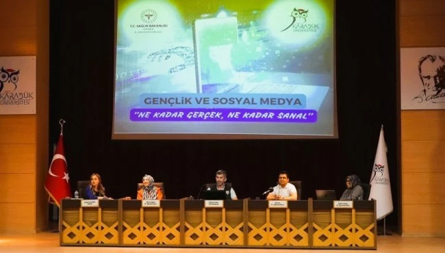 Sağlık Bakanlığı ve Yükseköğretim Kurulu Başkanlığı iş birliğinde Karabük Üniversitesi ile İl Sağlık Müdürlüğü paydaşlığında gerçekleşen söyleşide davranışsal bağımlılık, uzmanlar internet, sosyal medya kullanımı ve siber suç konularında uzmanlar tarafından bilgilendirme yapıldı.