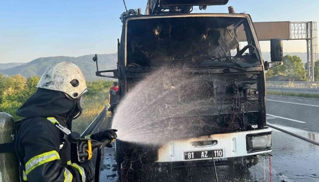 Olay, akşam saatlerinde TEM otoyolu Düzce Gişeler mevkiinde meydana geldi. Edinilen bilgilere göre, Ö.D. idaresindeki 81 AZ 110 plakalı Park ve Bahçeler Müdürlüğü'ne ait Ford marka sulama kamyonu Gişeler mevkiinde refüj sulama çalışmalarının ardından boşalan suyu tekrar depolamaya döndüğü esnada elektrik kontağından bir anda alev almaya başladı. Sürücü Ö.D. tankerde kalan son sular ile yangını söndürmeye çalışsa da başarılı olamadı. Bölgeye gelen İtfaiye ekiplerinin çalışması ile sulama aracındaki alevler söndürüldü. Tamamen küle dönerek kullanılamaz hale gelen araç, çekici vasıtası ile otoparka kaldırılmasının ardından trafik normal seyrine döndü.