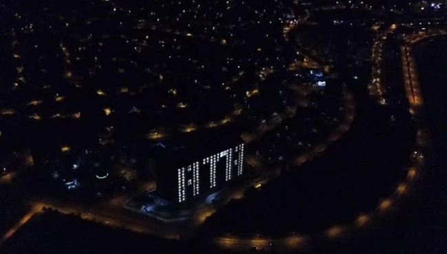 Karabük'te Soğuksu ile Asiye Hatun Kız KYK yurdunun personelleri odaların ışıklarıyla "ATA" ve "1919" koreografisi oluşturdu. Atatürk'ün Bandırma Vapuru ile Samsun'a çıkarak Milli Mücadele'yi başlatmasının 103. yıl dönümü ve 19 Mayıs Atatürk'ü Anma Gençlik ve Spor Bayramı dolayısıyla hazırlanan yazılar kentin farklı noktalarından görünürken, izleyenlere görsel şölen sundu. O anlar dron ile görüntülendi.