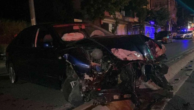 Önce direğe sonra refüje çarptı