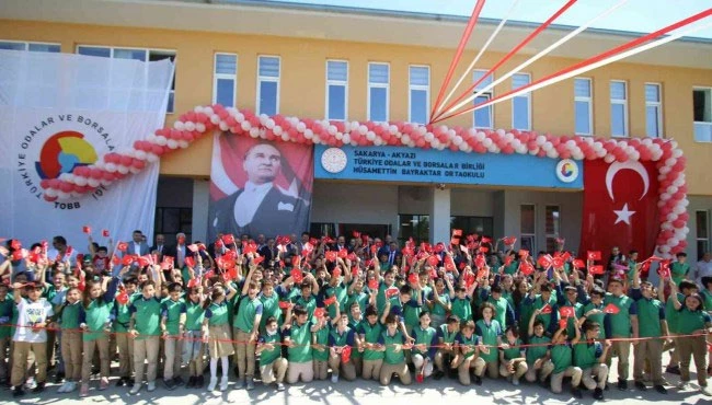 Akyazı Ticaret Odası sonrasında Akyazı Ticaret Borsası'na giden TOBB Başkanı Hisarcıklıoğlu sonrasında ise Belediye Başkanı Bilal Soykan, İlçe Kaymakamı Yakup Güney ve oda başkanları ile birlikte TOBB Hüsamettin Bayraktar Ortaokulu'nu ziyaret etti. Burada İl Milli Eğitim Müdürü Ebubekir Sıddık Savaşçı, İlçe Milli Eğitim Müdürü Recep Özdemir, okul idarecileri ve öğrenciler tarafından karşılanan TOBB Başkanı Hisarcıklıoğlu, okulun açılışını protokol üyeleri ile birlikte gerçekleştirdi. TOBB olarak eğitime destek vermekten mutluluk duyduklarını ifade eden Hisarcıklıoğlu, "Akyazı'mıza ve öğrencilerimize hayırlı olsun" şeklinde konuştu.
