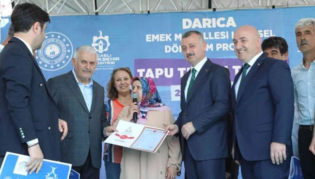 AK Parti Genel Başkanvekili Binali Yıldırım, Darıca Belediyesi tarafından düzenlenen Emek Mahallesi Kentsel Dönüşüm Projesi çerçevesinde tapu teslim törenine katıldı. 67 yaşındaki Neriman Uysal, tapusunu Binali Yıldırım ve Mehmet Özhaseki'nin elinden aldı. Tapu tesliminin ardından sahnede yaşanan diyalog ise programa katılanları kahkahaya boğdu. Tapusunu aldıktan sonra Binali Yıldırım'ı çaya davet eden Neriman Uysal'a Binali Yıldırım'ın hemen ardından katılması gereken programların olduğu söylendi. İkna olmayan Neriman Uysal, "Ben dün akşamdan bu yana hazırlık yapıyorum. Bir bardak çay içmeden sizi göndermem' dedi. Adeta Binali Yıldırım'ın kolundan tutan Uysal, evine götürmeyi başardı.