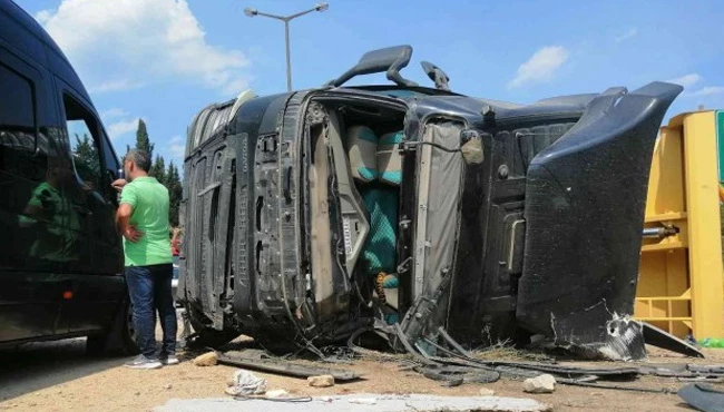 Kaza, İzmit ilçesi TEM Otoyolu Kuruçeşme mevkii Ankara istikametinde meydana geldi. Edinilen bilgiye göre, A.A. idaresindeki 34 DRL 003 plakalı Volvo marka hafriyat kamyonu sürücüsünün direksiyon hakimiyetini kaybetmesi neticesinde kontrolden çıkarak yol kenarındaki bariyerlere çarptı. Çarpmanın şiddetiyle hafriyat kamyonu savrularak yolun ortasında devrildi. Kamyonda bulunan tonlarca hafriyat yola döküldü.