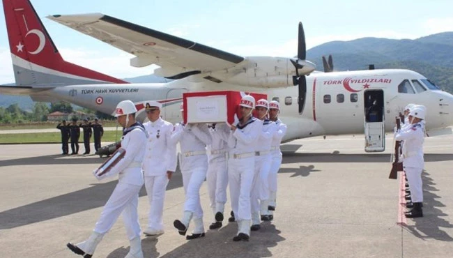 Şehit Fatih Özkaya'nın naaşı Zonguldak Havalimanı'na getirildi