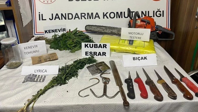 Düzce il Jandarma Komutanlığına bağlı Merkez İlçe Jandarma Komutanlığı, Çevre Koruma, JASAT, İstihbarat ve KOM şubesi ekipleri Darıca Mahallesi'nde ikamet eden R.L.'nin Samsun'dan Düzce'ye at getirerek kesim yapacağı bilgisine ulaştı. Adli makamlardan alınan arama kararına istinaden şüpheli şahsın ev, ahır, eklentileri ile aracında uyuşturucu madde köpek unsuru ile yapılan aramada; 10 adet at, 15 kök kenevir, 24 gram kubar esrar, 6 adet yeşil reçeteli ilaç, 105 gram kenevir tohumu, 6 adet kasap bıçağı ve 1 adet eye, 10 kiloluk poşet, kova dolusu hayvan asmak için kullanılan kanca, 1 adet motorlu testere ele geçirildi.