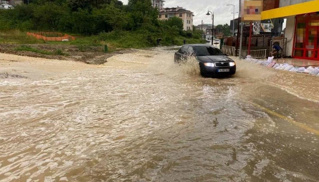 Meteoroloji Genel Müdürlüğü'nün kırmızı uyarı verdiği Bartın'da sağanak yağmur etkili olmaya devam ediyor. Kentin farklı noktalarında oluşan yaka selleri yeniden yolları göle çevirdi. Sürücüler trafikte ilerlemekte güçlük çekerken esnaflar iş yerlerinin önüne çuvallarla set yaparak su baskınlarını önlemeye çalıştı.