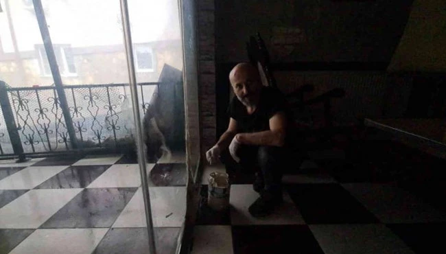 Alçı çekerek işyerini korumaya çalıştı