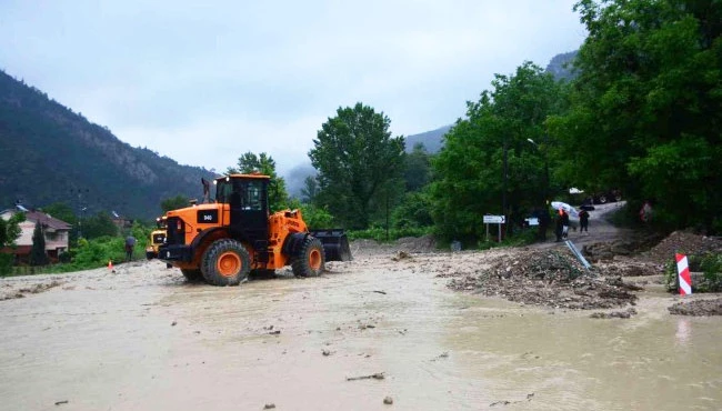 Karabük'te sağanak hayatı olumsuz etkilemeye devam ediyor. Yenice ilçesi Karakavuz Mahallesi Yeşilköy mevkiinde dağlardan gelen yağmur suları yolu trafiğe kapattı. Karayolları Genel Müdürlüğüne bağlı iş makineleri yolu açmak için seferber oldu. Trafik, jandarma ekiplerinin kontrolünde her iki istikamette de durduruldu. Uzun araç kuyrukları oluşan yolda yaklaşık 1.5 saatlik çalışma neticesinde trafik yeniden normal seyrine döndü.
