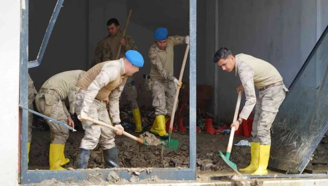 Kastamonu'nun Küre, Şenpazar, Azdavay, Çatalzeytin, Bozkurt ve İnebolu ilçelerinde meydana gelen taşkında çamur ve balçıkla kaplanan yol, cadde ve sokaklarla birlikte ev ve işyerlerinin temizliğinde de jandarma komando ekipleri görev yapıyor.