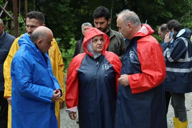 Ana su hattı ve yolun zarar gördüğü bölgeye beraberinde, AK Parti Genel Merkez Kadın Kolları Başkanı ve Düzce Milletvekili Ayşe Keşir, İller Bankası Genel Müdür Yardımcısı Selahattin Özsoy, İller Bankası Bölge Müdürü Levent Yanar, Beyköy Belediye Başkanı Osman Kılıç, Başkan yardımcıları ve ilgili birim müdürleri ile birlikte giden Özlü, ekiplerin çalışmalarının aralıksız sürdüğünü kaydederek; "Dün gece gerçekleşen yoğun yağışların ardından taşan Uğur suyu, ana su hattımıza ve regülatöre giden yola ağır hasar verdi. Burada yaklaşık 600 metrelik bir alan yok olmuş durumda. Tüm ekiplerimizi buraya yönlendirdik. Burada bir konteyner, bir mobil jenaratör, 10 dozer, 10 ekskavatör, 30 kamyon 5 yükleyici ile taşkına müdahale ederek hem yolu hem de su hattını onaracağız" dedi.
