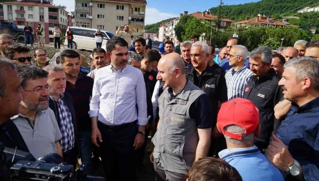 Çevre, Şehircilik ve İklim Değişikliği Bakanı Murat Kurum ile Ulaştırma ve Altyapı Bakanı Adil Karaismailoğlu, selin vurduğu Kastamonu'nun Bozkurt ilçesinde incelemelerde bulundu. Bakan Kurum, "Dere yatağının ağzının genişletilmesiyle büyük bir afeti en az hasarla atlattık" dedi.