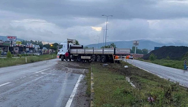 Kaza, ilçenin Zonguldak-Bartın karayolunda meydana geldi. Edinilen bilgiye göre, Kayıkçılar istikametinden Çaycuma istikametine gitmekte olan 74 DK 017 plakalı tır sürücüsü yağmur yağmasıyla kayganlaşan yolda direksiyon hakimiyetini kaybederek önce direğe çarptı. Boş olan tır savrulmasının ardından refüje çarparak karşı şeride geçti. Meydana gelen kazada maddi hasar oluştu.