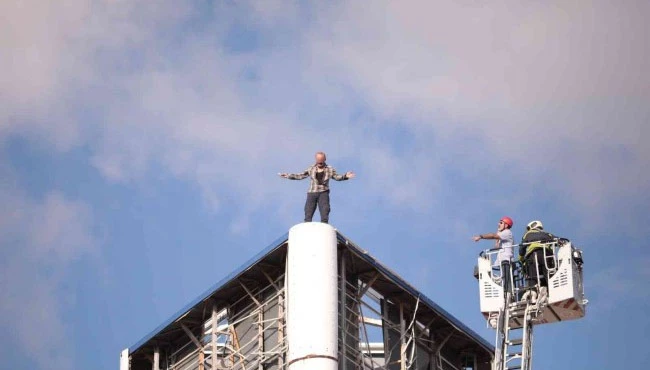 Olay, İzmit ilçesi 42 Evler Körfez Mahallesi'nde kullanılmayan bir alışveriş merkezinin bahçesinde meydana geldi. Edinilen bilgiye göre, ailevi sorunları olduğu iddia edilen M.E., 50 metre yüksekliğindeki reklam tabelasına çıkarak intihar girişiminde bulundu. Durumu gören çevredeki vatandaşlar 112 Acil Çağrı Merkezi'ne haber verdi. İhbar üzerine olay yerine itfaiye, sağlık ve polis ekipleri sevk edildi. Kısa sürede olay yerine gelen ekipler, şahsı uzun süre ikna etmeye çalıştı. İtfaiye ekipleri, merdiven yardımıyla tabelaya kadar uzanarak M.E.'yi indirmek istese de şahıs ikna edilemedi. Polis ekiplerinin haber verdiği M.E.'nin ailesi olay yerine geldi. Aile bireyleri, M.E.'yi indirebilmek için uzun süre dil döktü. Yaklaşık 3 saat boyunca elindeki bıçakla ağlayan M.E., uzun uğraşlar neticesinde ikna edilerek aşağıya indirildi.