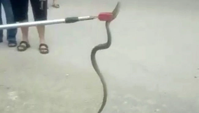 Otomobilin altına giren yılan mahalleliyi korkuttu