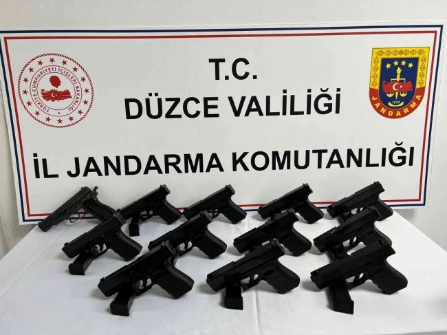 Düzce'nin Kaynaşlı ilçesinde Jandarma Komutanlığına bağlı ekipler Yeşiltepe köyünde K.K. isimli şahsın silah kaçakçılığı yaptığı yönde duyum aldı. İstihbaratı değerlendiren ekipler yapılan fiziki ve teknik takip sonrası K.K.'nın evine baskın yaptı. Ekipler, yapılan baskında 11 adet tabanca ve bu tabancalara ait mühimmat ele geçirdi. Gözaltına alına K.K. hakkında adli işlem başlatıldı.