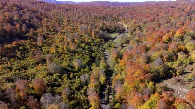 Hazan renklerinin hakim olduğu Yenice ormanları görüntüsüyle mest ediyor