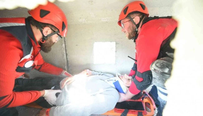 Kastamonu'da itfaiye, jandarma, UMKE ve AFAD ekipleri ortak düzenledikleri tatbikatta çöken binada enkaz altında kalan yaralılara müdahale edildi. Yaralılar, gerçeği aratmayan bir tatbikatta enkaz altından kurtarıldı.