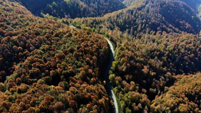 Sakarya'nın Hendek ile Kocaali ilçeleri arasında bulunan ve 4 mevsim farklı güzelliklere sahip 900 rakımlı Çam Dağı, sonbaharla birlikte yeşil, sarı ve kızılın tonlarına büründü. Eşsiz manzara eşliğinde yolculuk fırsatı sunan ve renk cümbüşünün oluştuğu bölge havadan da görüntülendi.