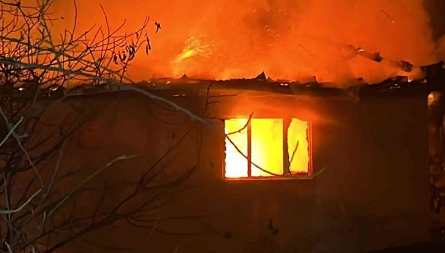 İki katlı ev alev alev yandı