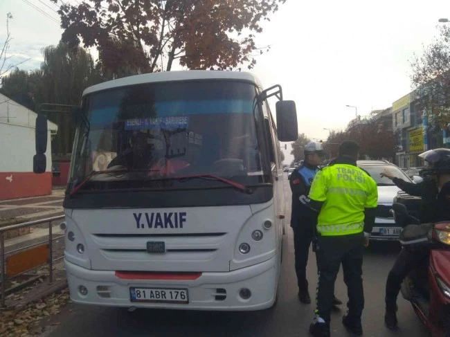 DÜZCE(İHA) – Düzce'de polis ve zabıta ekipleri çevre ilçe, belde ve köylerden merkeze yolcu taşıyan toplu taşıma araçlarına yönelik güzergah denetimi gerçekleştirdi. Güzergah ihlali yapan 3 araca cezai işlem uygulandı.