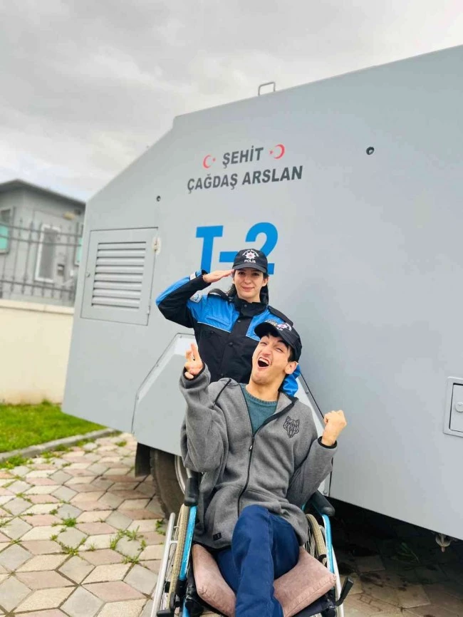 Kocaeli'nde özel gereksinimli Hasan Can'ın zırhlı araç ve TOMA'ya binme hayali gerçeğe dönüştü.