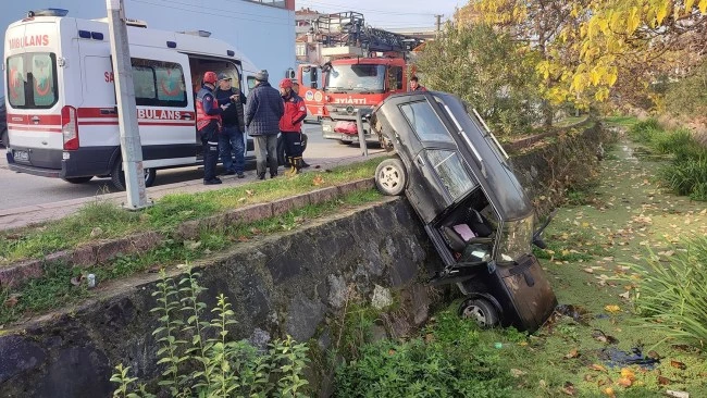 Otomobil su kanalına uçtu
