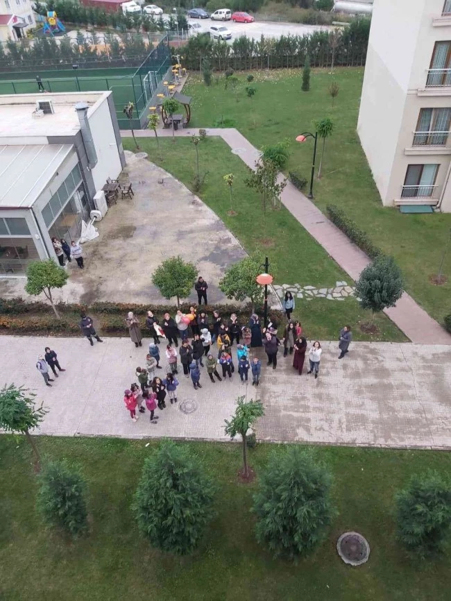 Körfezkent Emlak Konut İlkokulu öğretmenlerinden Sevinç Özdemir (45), 17 Kasım tarihinde lavaboda bayıldı. Ambulansla Derince Eğitim ve Araştırma Hastanesi'ne kaldırılan Özdemir burada tedavi altına alındı. Beyninde pıhtı attığı öğrenilen Özdemir, tedavisinin ardından taburcu edildi. Bir süredir öğretmenlerinden ayrı kalan minikler ise Özdemir'e sürpriz yaptı. Sevinç Özdemir'in yaşadığı binanın önünde toplanan minikler, hep bir ağızdan "Sizi çok seviyoruz" diyerek öğretmenlerine seslendi. Minikler, öğretmenleri için ellerindeki kalpli balonları gökyüzüne bıraktı. Mutluluğu yüzünden okunan Sevinç Özdemir ise pencereden öğrencilerine el salladı.