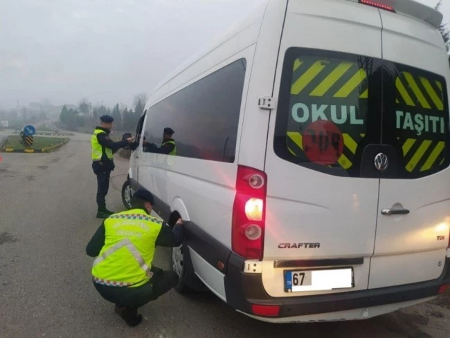 Zonguldak'ta jandarma ekiplerince okul servis araçları denetlendi.