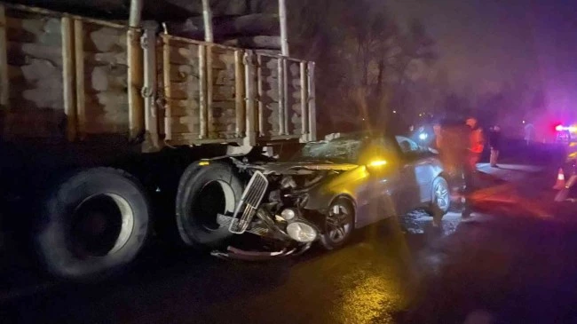 Otomobil tomruk yüklü kamyona çarptı: 1 yaralı