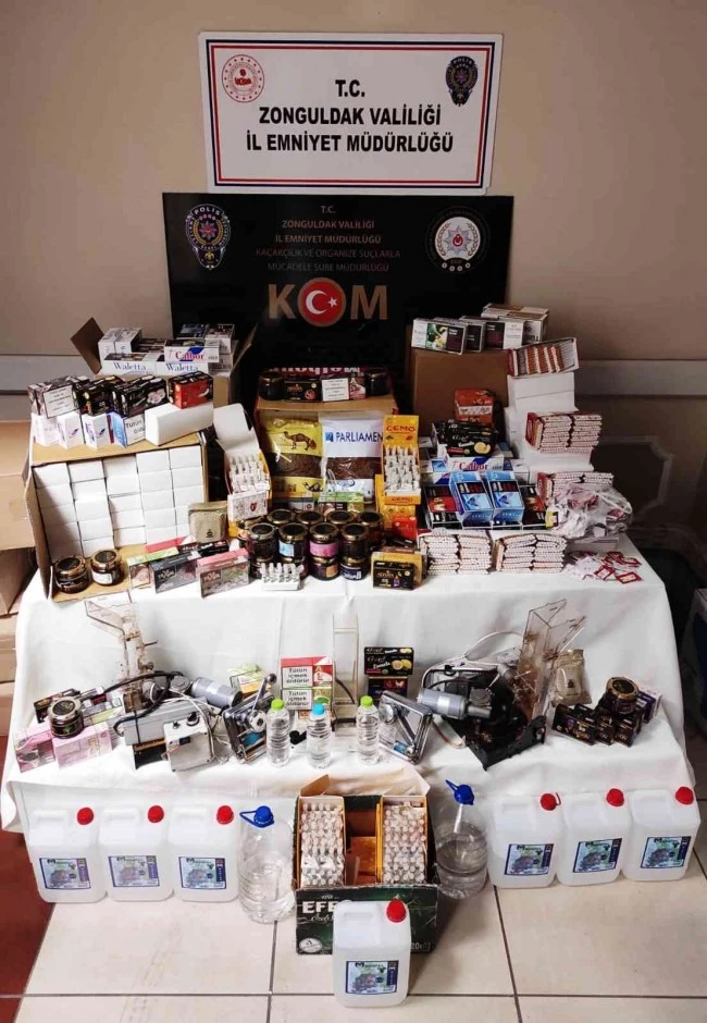 Edinilen bilgiye göre Kaçakçılık ve Organize Suçlarla Mücadele (KOM) Şube Müdürlüğü ekiplerince il genelinde yaklaşan yılbaşı öncesi el yapımı sahte ve kaçak alkollü içki imalatı ve satışı ile tütün ve tütün mamulleri kaçakçılığın önlenmesine yönelik baskınlar düzenlendi. Çaycuma Cumhuriyet Başsavcılığı koordinesinde ve Çaycuma İlçe Emniyet Müdürlüğü ekipleriyle birlikte iki ayrı adreste yapılan adli aramalarda çok sayıda kaçak alkol ve tütün mamulleri ele geçirildi.