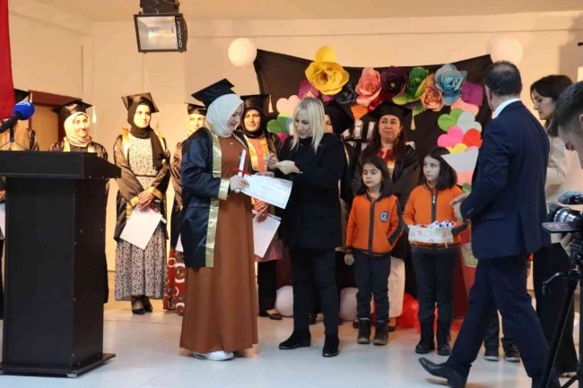 Milli Eğitim Bakanlığı tarından yürütülen "Aile Okulu" projesi doğrultusunda kursta eğitim alan velilere sertifikaları törenle verildi.