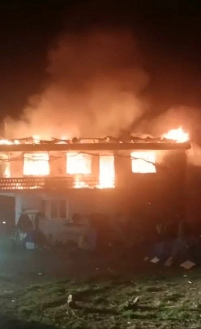 İki katlı bina alev alev yandı