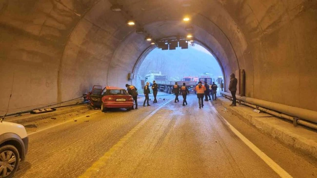 Kaza nedeniyle çift yönlü olarak trafiğe kapanan karayolu, kepçe yardımı ile tırın dorsesi kenara alındıktan sonra kontrollü şekilde araç geçişine açıldı.